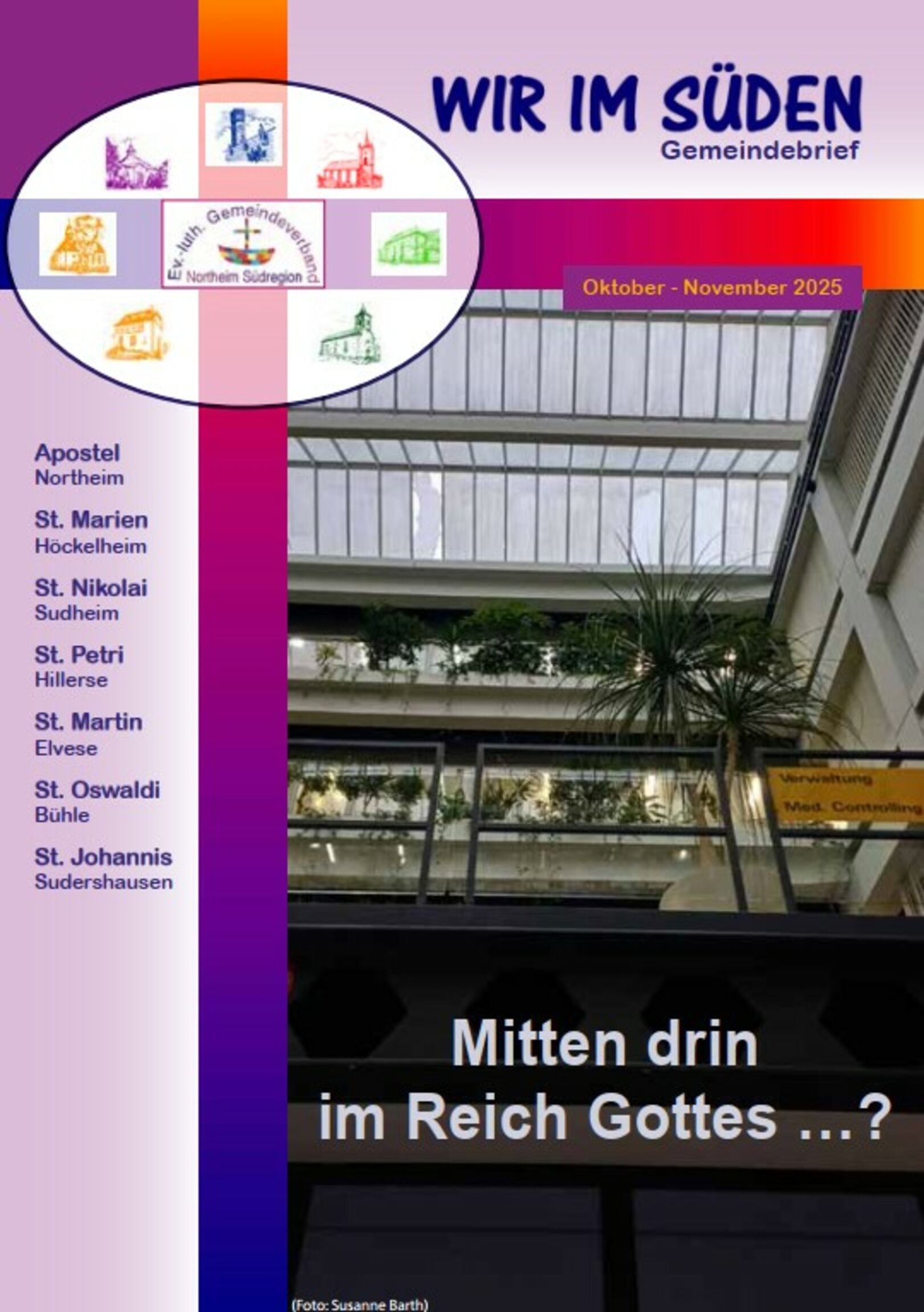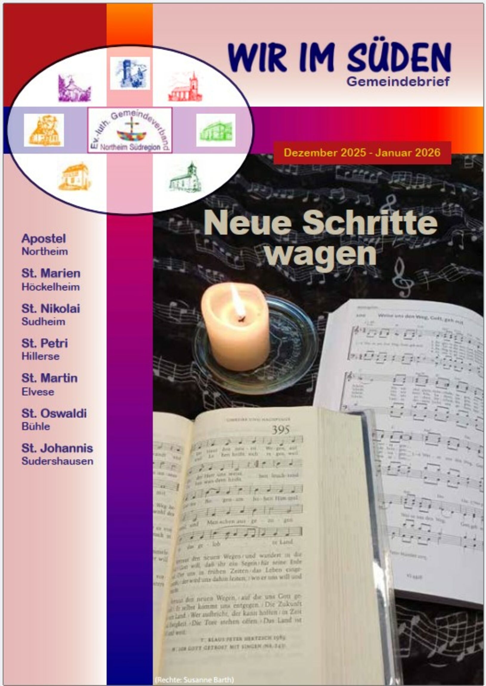 Seit fast 20 Jahren heißt unser Gemeindebrief "Wir im Süden". Schon länger gab es sechsmal im Jahr die neuesten Informationen aus den Kirchengemeinden in Northeims Süden im gemeinsamen Gemeindebrief. Und das, obwohl unser Gemeindeverband erst 2006 gegründet wurde.