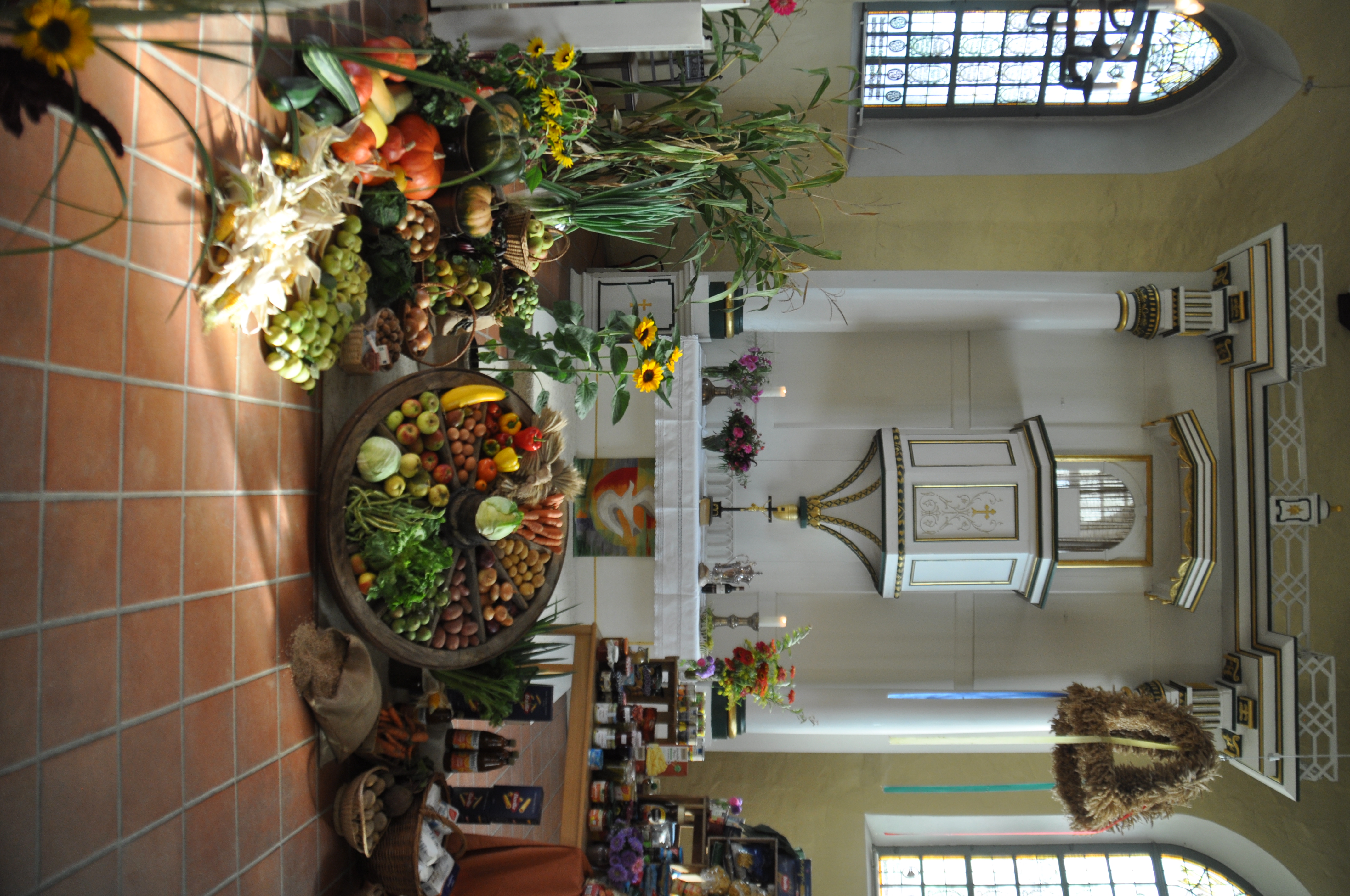 Zum Erntedankfest erfreuen sich unsere GottesdienstbesucherInnen jährlich wider über ein besonders eindruckvoll geschmückter Altarraum. Die Konfis sammeln die Erntegaben und Spenden im Dorf und Kerstin Risting, Heidi Kuhlenkamp, Julia Neisecke übernehmen das Schmücken des Altarraumes!